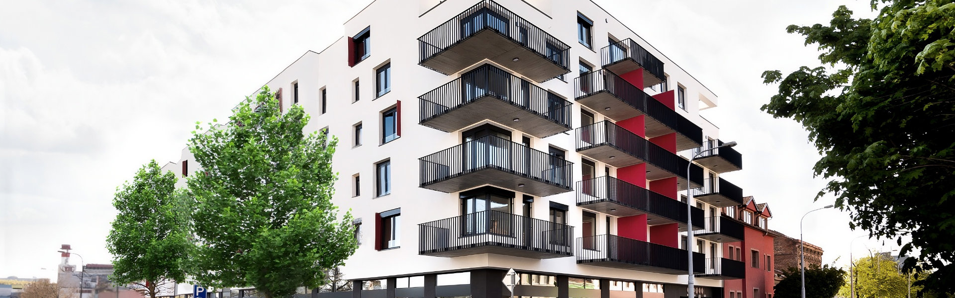 Novostavba s šesti nadzemními podlažími má tři samostatné vchody s prostornými vstupními halami. V přízemí se nachází také místnosti pro kočárky a obchodní prostory směřující do ulice. Jižní směr obytných místností jednotlivých bytů zajišťuje dostatek slunečního svitu. Každý byt má terasu, balkon, či prostornou předzahrádku, o kterou se stará automatické zavlažování.