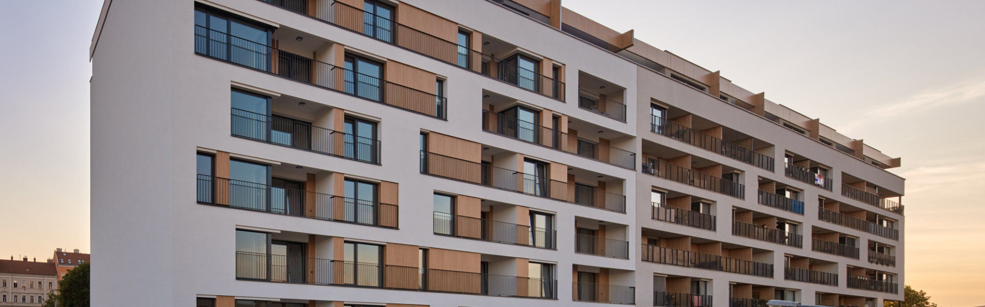 Architektonicky další etapa navazuje na úspěšně zkolaudovanou stavbu navrženou studiem A69 architekti. Jednoduché linie domu se smetanovou fasádou doplňuje výrazné obložení v dekoru dřeva, které dodává exteriéru budovy zcela originální vzhled.