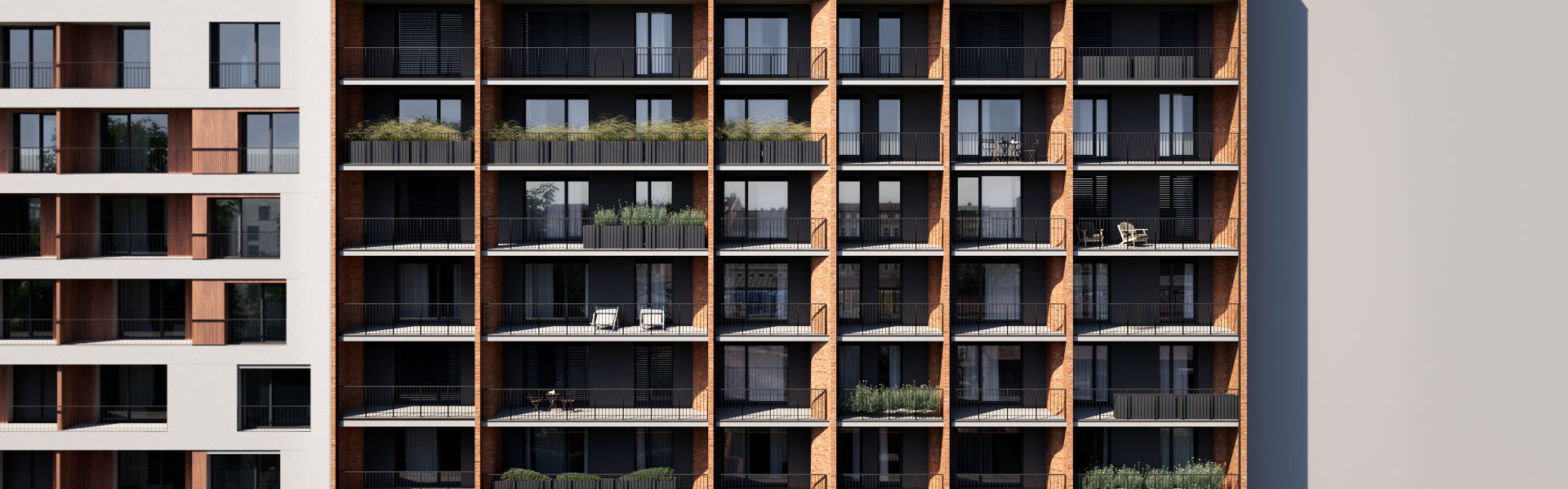 Nová etapa projektu přináší změnu v architektonickém stylu. Zatímco předchozí fáze pracovaly s horizontálním členěním fasády, tentokrát jsou akcentovány vertikální prvky, které přinášejí nový rytmus do uliční fronty. Tato proměna reaguje na vývoj okolní zástavby a přirozeně navazuje na urbanistický kontext čtvrti Královo Pole.